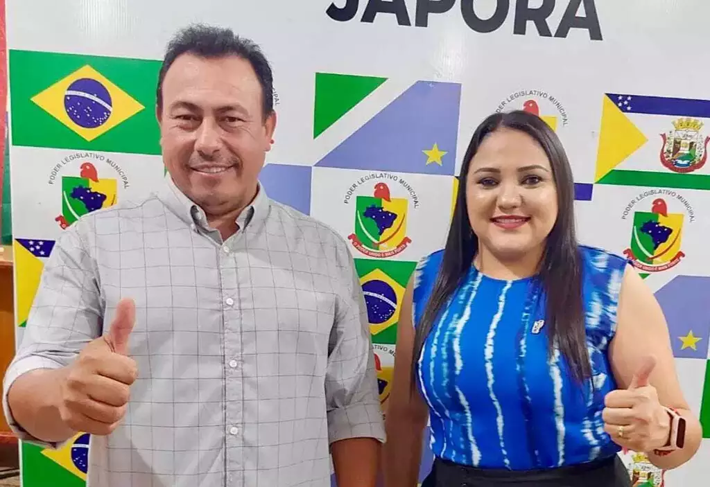 Prefeito ao lado da vice Aninha.