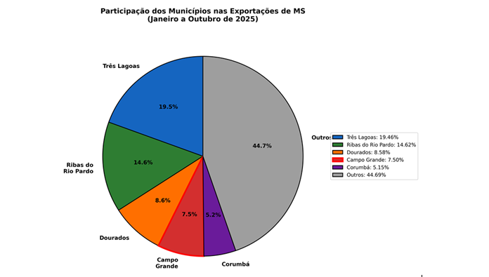 Campo Grande reafirma sua força no comércio internacional e se consolida como um dos principais polos econômicos de Mato Grosso do Sul. Em 2025, o município alcançou a marca estimada de US$ 500 milhões em exportações entre janeiro e novembro, ocupando o posto de terceiro maior exportador do estado e respondendo por 7,5% das vendas externas sul-mato-grossenses.