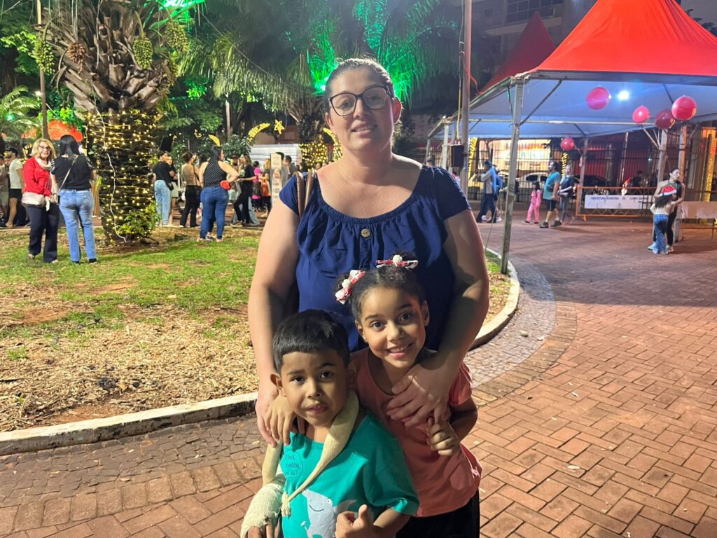 A experiência também foi especial para Adrieli Neiva, de 32 anos, moradora do Jardim Batistão, que levou a filha Manuela, de 5 anos, e o sobrinho Djalma, de 6. “Essa época do ano representa amor, paz e união. Foi a primeira vez que conseguimos vir, e foi muito bonito. As crianças ficaram encantadas”.