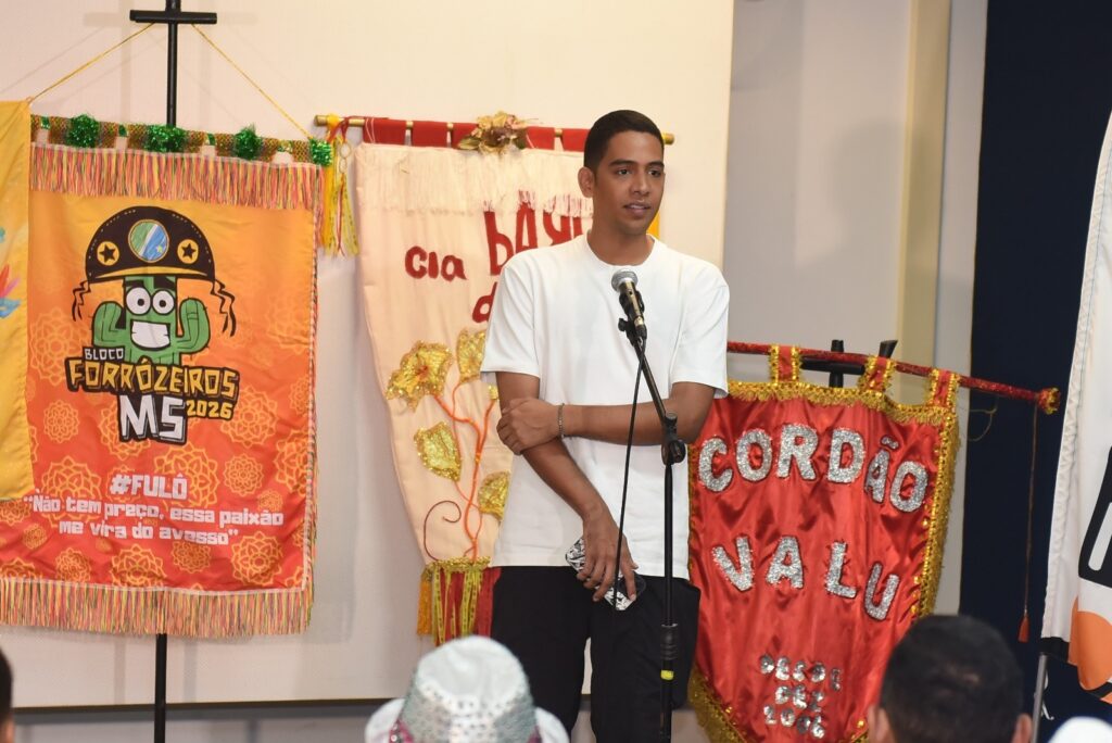 Representando os blocos carnavalescos, o presidente da Associação de Blocos Carnavalescos de Campo Grande (ABC), Thallysson Peres, ressaltou o papel da Esplanada Ferroviária como espaço tradicional da folia e destacou a parceria com o poder público.