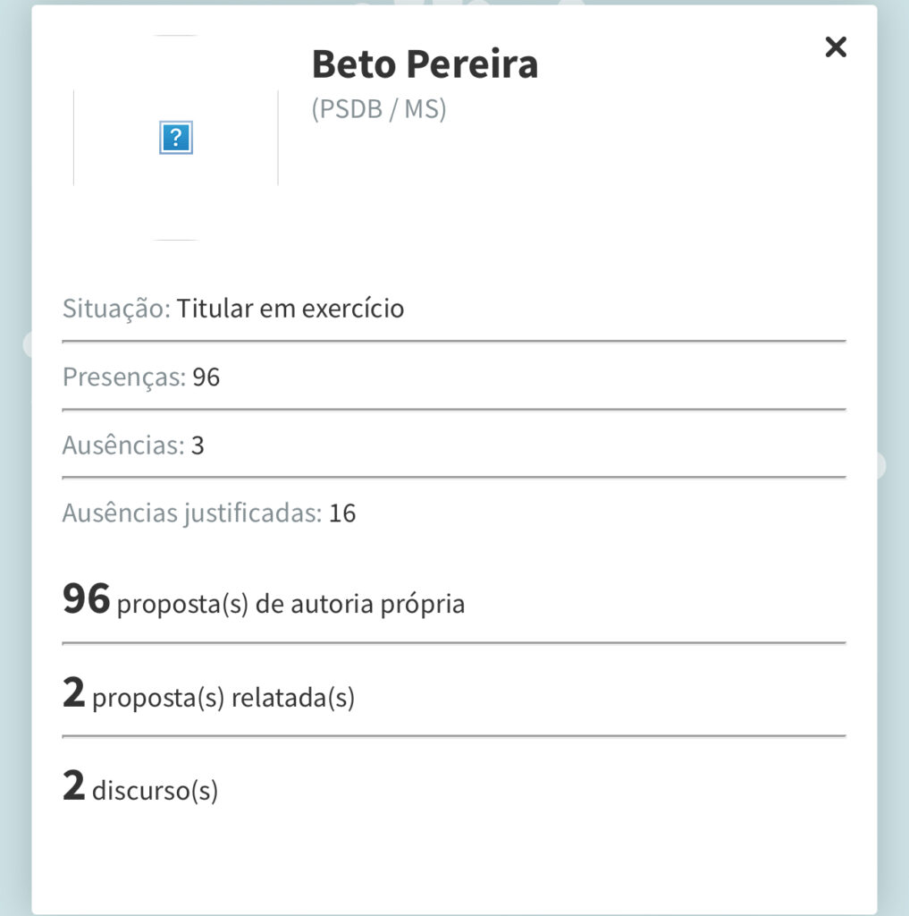 Já o pré candidato a prefeito de Campo Grande, deputado Beto Pereira tem uma atuação parlamentar mais tímida. E também é o mais faltoso. Ele tem três ausências e 16 ausências justificadas, tendo participado de 96 das 115 sessões.