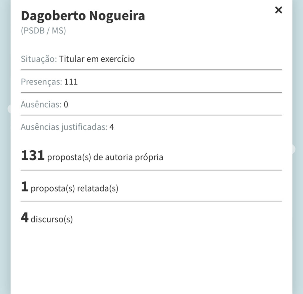 Nogueira, o Dagoberto não o gordinho, fez quatro discursos, uma relatoria e apresentou 131 propostas de autoria própria.