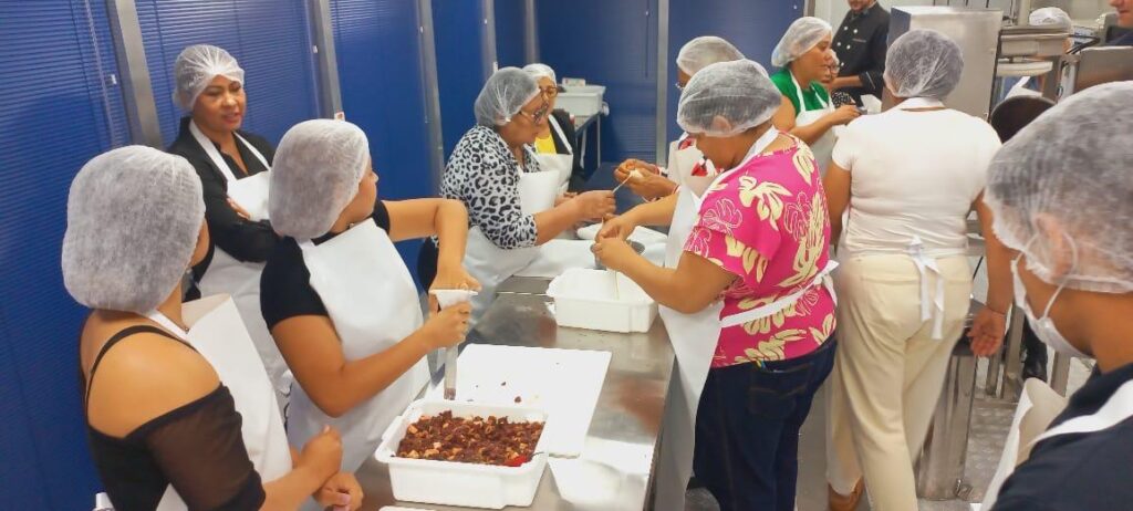 Mais do que ensinar receitas, a capacitação também focou na organização e no trabalho em equipe em uma cozinha profissional. O conteúdo foi dividido em três etapas, incluindo higiene, amolação de facas e preparo dos ingredientes.