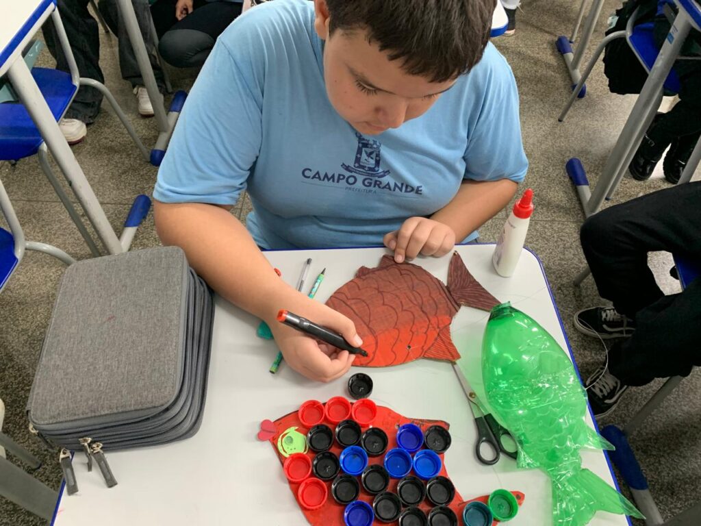 Entre as unidades participantes, estão os alunos da Escola Municipal João Evangelista Vieira de Almeida, na Vila Almeida, onde o aprendizado ganhou ainda mais significado. Para o estudante Pedro Henrique da Silva Vieira Machado, de 12 anos, a experiência foi marcante e despertou um novo olhar sobre o meio ambiente. “Foi muito bom saber o que podemos fazer para proteger as espécies migratórias e conhecer mais sobre os peixes da nossa região. Foi muito gratificante fazer as esculturas e móbiles reutilizando materiais que iriam para o lixo”, destaca.