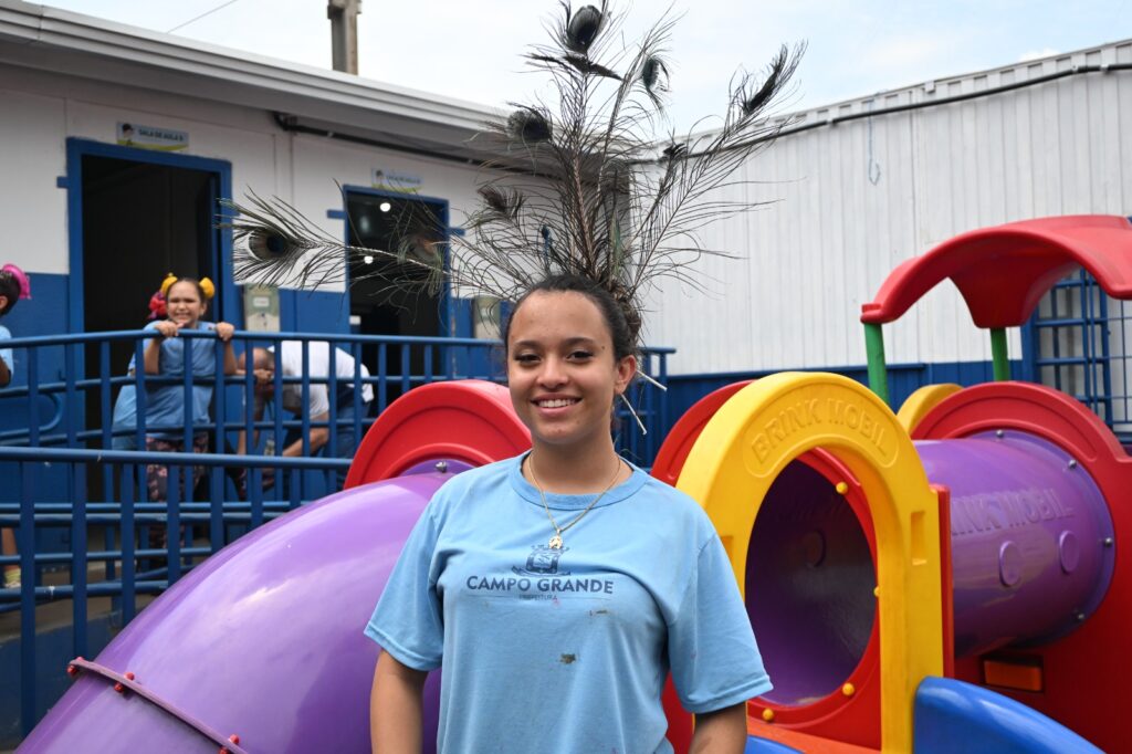 Na zona rural de Rochedinho, distrito acolhedor de Campo Grande, o som das risadas infantis se mistura ao canto dos pássaros e ao cheiro de terra úmida. O cenário é o da Escola Municipal Agrícola Barão do Rio Branco, onde o aprendizado ultrapassa os muros da sala de aula e se espalha pelos três campos que compõem o espaço. Era Dia do Cabelo Maluco, em comemoração ao Dia do Professor, e a alegria tomava conta da quadra de esportes. Entre tranças coloridas, aranhas de brinquedo e tintas no cabelo, a festa unia alunos e professores.