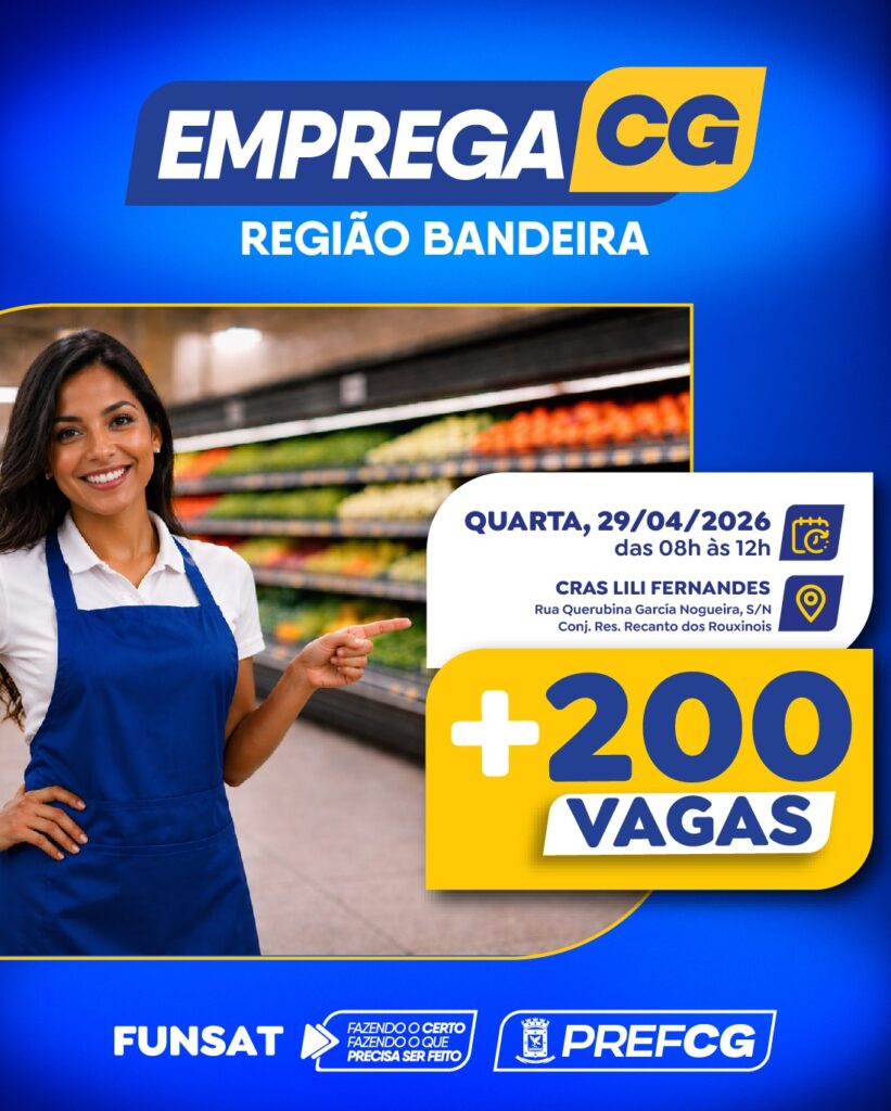 A Região Bandeira recebe, nesta quarta-feira (29), mais uma edição do Emprega CG, ação que reúne empresas e candidatos em busca de oportunidades de trabalho. O evento acontece das 8h às 12h, no CRAS Lili Fernandes, no Jardim Moema, com a participação de 10 empresas parceiras e oferta de mais de 200 vagas.