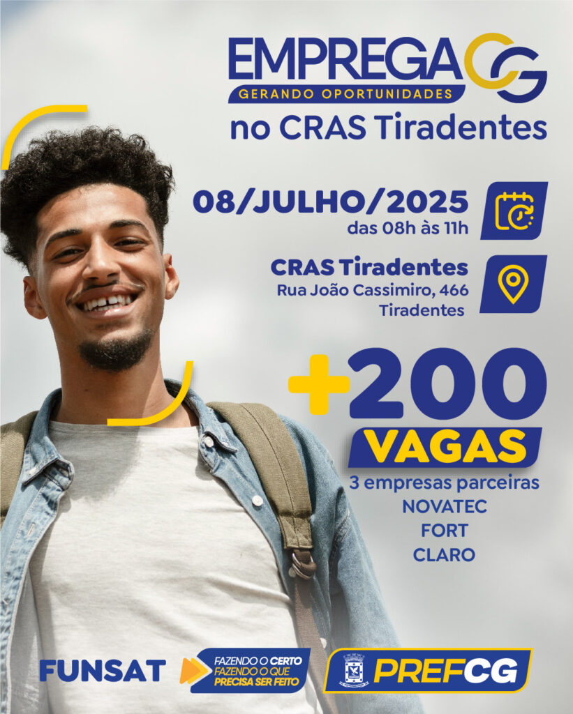 O próximo Emprega CG está agendado para 8 de julho, próxima terça-feira, no CRAS Tiradentes (Centro de Referência em Assistência Social da região).