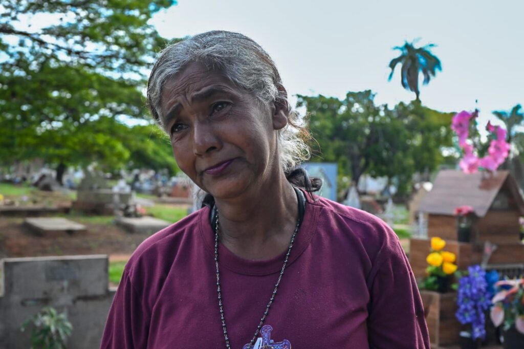“É um dia difícil, vem muita saudade. A gente vem todo ano, sempre traz flores, limpa, conversa um pouco. Agora quero ver se consigo colocar uma lápide nova, deixar mais bonito pra ele. É uma forma de cuidar, de estar perto de novo, mesmo que por um instante”, disse, com a voz embargada.