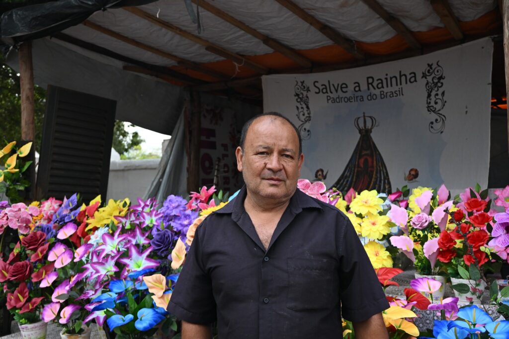No cemitério Santo Antônio, o cenário é parecido: silêncio respeitoso, passos lentos e mãos que ajeitam flores com delicadeza. O comerciante Cristóvão Ramon Gonçalves, há 33 anos no local, fala com serenidade sobre o trabalho.