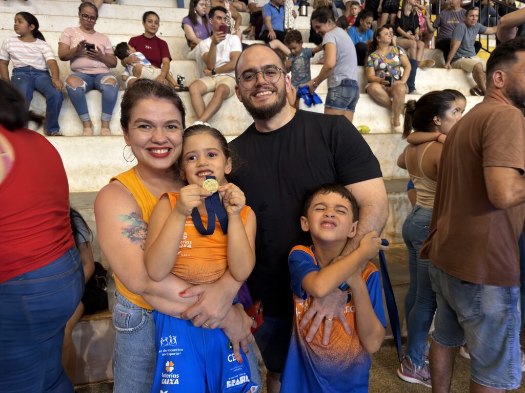 O impacto do projeto também foi evidenciado nos depoimentos das famílias. Guilherme Brasil e Paula Brasil, pais de Otto e Olívia, falaram sobre o primeiro contato dos filhos com o esporte. “Eles adoram a ginástica artística e esse projeto fez toda a diferença por ser próximo da nossa casa e da escola. É o primeiro contato que eles têm com o esporte e a gente gosta bastante”, relatou a mãe. O pai também destacou o caráter inclusivo da iniciativa. “A Olívia é PCD e fomos muito bem acolhidos pela coordenação e pelos professores” afirmou. “Existe um trabalho de inclusão muito bacana. Na turma dela também há crianças com TEA (transtorno do espectro autista). Hoje estamos se dividindo entre querer gravar, fotografar, assistir. É algo encantador”, complementou Paula.