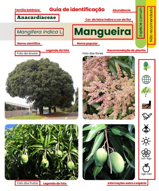 Com formato ilustrativo e linguagem acessível, tanto o guia quanto o manual trazem informações importantes para a população. Somente o guia apresenta mais de 50 espécies encontradas na cidade, com fotografias, características botânicas e ecológicas, orientações sobre o manejo adequado e um calendário de floração, ferramenta prática para quem deseja planejar ações de paisagismo, educação ambiental e conservação da biodiversidade.