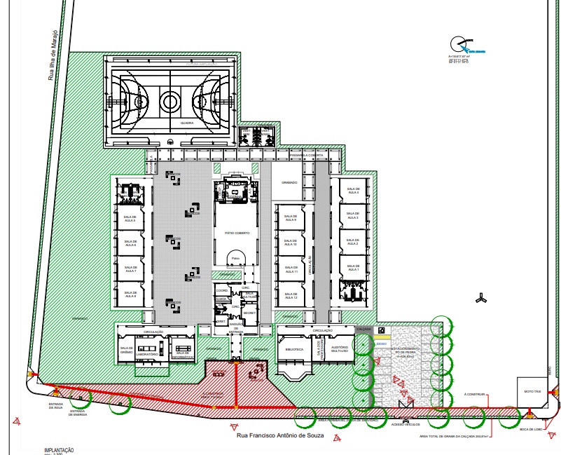 A escola terá capacidade para até 780 alunos em dois turnos (matutino e vespertino), além de 390 estudantes em período integral. O espaço contará com 12 salas de aula, pátio coberto, quadra poliesportiva coberta, biblioteca, laboratório, sala de informática e sala multiuso, distribuídos em oito blocos.